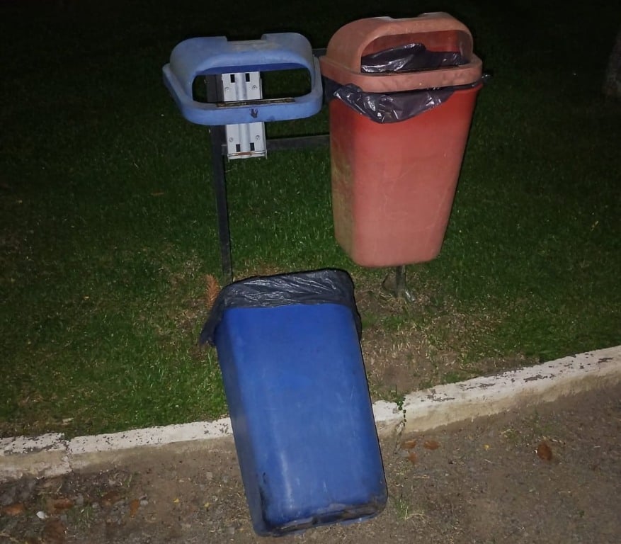 A ação teve início após a denúncia de que um vândalo estaria depredando lixeiras e parte da iluminação pública do local. As equipes iniciaram buscas nas proximidades, localizando o suspeito.