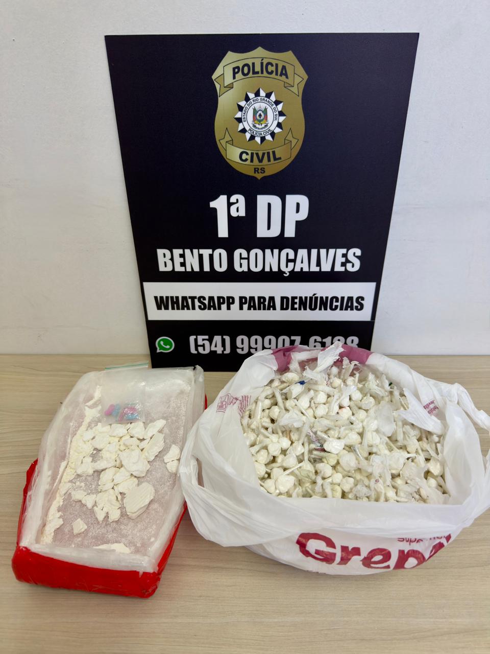 Bento Gonçalves - A Polícia Civil prendeu dois homens, de 23 e 27 anos, por tráfico de drogas na tarde de terça-feira (25), no bairro Humaitá, em Bento Gonçalves. A 1ª Delegacia de Polícia coordenou a ação em um apartamento na Rua Ezilio Michelin, usado para armazenar cocaína destinada a pontos de venda na cidade.