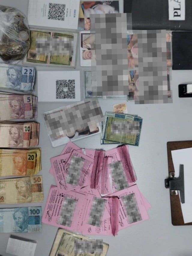 As presas, com idades de 31, 46, 47 e 51 anos, estavam em posse de R$ 1.250,94 em dinheiro, além de todo o material usado no crime. Foram apreendidos um laudo médico, fotos de crianças, cópias de documentos e talões de rifas.