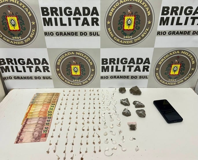 Os militares realizavam patrulhamento ostensivo em uma área já conhecida pelo tráfico, quando abordaram o suspeito. Em busca pessoal, foram localizadas 100 pedras de crack, sete porções de maconha, 35 buchas de cocaína, R$ 400 e um celular.