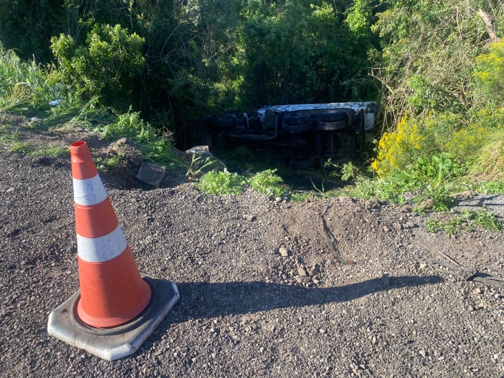 O caminhão caçamba que tombou às margens da ERS-122, em Farroupilha, na noite da quinta-feira (23), será retirado ao longo da manhã desta sexta (24), segundo a concessionária Caminhos da Serra Gaúcha (CSG).