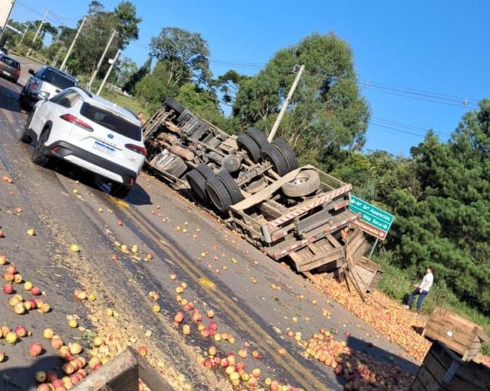 Caxias do Sul - Um caminhão Ford/Cargo 2429 tombou às margens da RSC-453 na tarde da última sexta-feira (6), após se envolver em um acidente no km 165 da rodovia, em Caxias do Sul. A ocorrência foi registrada por volta das 17h15.