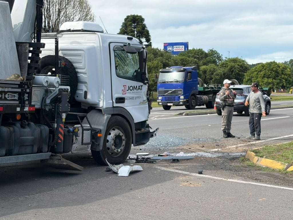 Caxias do Sul - Um acidente de trânsito envolvendo um ônibus de transporte fretado e um caminhão carregado com lajes pré-moldadas foi registrado na tarde desta segunda-feira (16), entre 15h e 15h30, na ERS-122, no quilômetro 55, em frente à empresa Fras-le, no trecho entre Caxias do Sul e Farroupilha.
