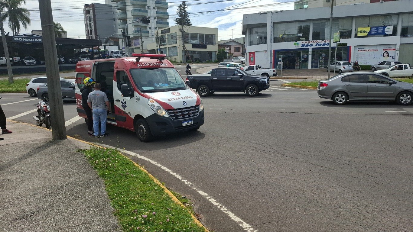O motociclista foi atendido pela equipe da Resgate Sul no local. O trânsito ficou bloqueado até a chegada da ambulância e a retirada da vítima do chão, mas já foi liberado.