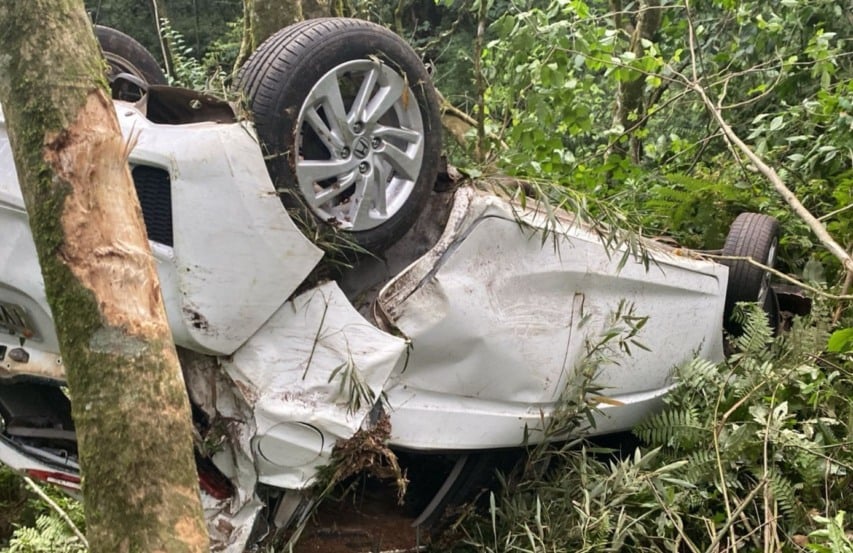 Farroupilha - Um grave acidente de trânsito foi registrado por volta das 17h50 desta sexta-feira (24), na Linha Machadinho, interior de Farroupilha. Um veículo Honda Fit caiu em uma ribanceira de aproximadamente 30 metros após o condutor perder o controle do veículo durante uma ultrapassagem.