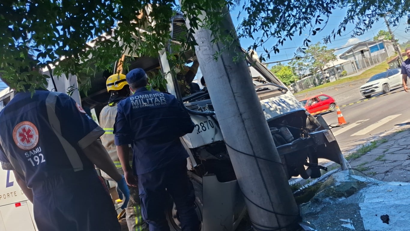 O colega correu até a via e conseguiu parar o trânsito, evitando uma tragédia maior, mas micro-ônibus seguiu em movimento e bateu violentamente contra um poste de concreto. Nenhum outro veículo foi atingido.