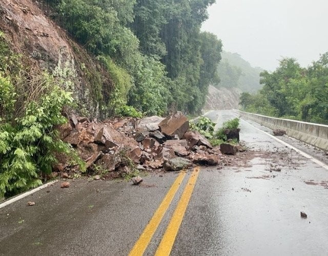 A Polícia Rodoviária Federal atua no local e orienta o tráfego, que segue bloqueado. A liberação total da pista depende da chegada de máquinas para a remoção do material com segurança.