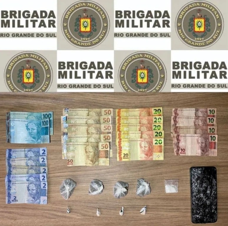 Já à noite, a Brigada Militar apreendeu outro adolescente, de 15 anos, no bairro Aurora, durante a Operação Cerco Fechado. Ele pilotava uma motocicleta com os faróis apagados e quebrou o celular ao ser abordado. Com ele, foram localizadas quatro porções de crack, quatro de maconha, uma de cocaína e R$ 601 em dinheiro.