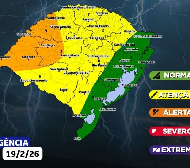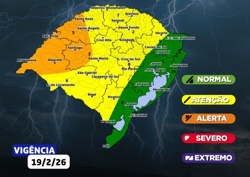 Os acumulados previstos variam entre 10 mm e 60 mm, com os maiores volumes no Oeste, Missões, Noroeste e Centro. Na sexta-feira (20/2), instabilidades isoladas persistem na metade Norte. Ao final do período, os acumulados no Estado devem ficar entre 10 mm e 40 mm, podendo chegar a 60 mm em áreas específicas.