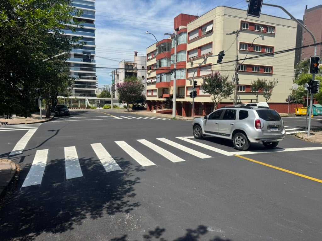 A Secretaria Municipal de Trânsito instalou novos semáforos no cruzamento da Rua Alfredo Chaves com a Avenida Independência, no bairro Exposição, em Caxias do Sul. Os equipamentos atendem veículos e pedestres, e a via também recebeu nova sinalização horizontal com faixas de segurança.