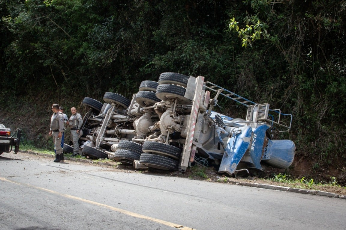 Garibaldi e Rio Grande do Sul - Um acidente mobilizou equipes de resgate na manhã deste sábado (21) em Garibaldi. Um caminhão de transporte de concreto tombou na Rua José Gava, nas proximidades do Castelo Benvenutti, no acesso ao bairro Tamandaré. Com o impacto, o condutor do veículo ficou preso às ferragens, exigindo o uso de equipamentos especiais para o resgate.