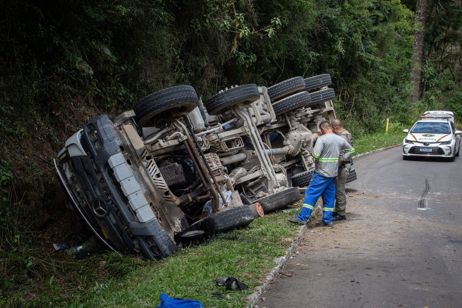 Garibaldi e Rio Grande do Sul - Um acidente mobilizou equipes de resgate na manhã deste sábado (21) em Garibaldi. Um caminhão de transporte de concreto tombou na Rua José Gava, nas proximidades do Castelo Benvenutti, no acesso ao bairro Tamandaré. Com o impacto, o condutor do veículo ficou preso às ferragens, exigindo o uso de equipamentos especiais para o resgate.