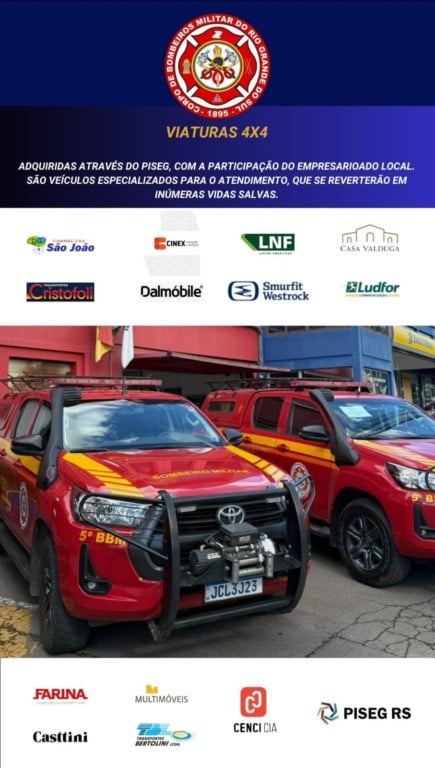 A Corporação de Bento Gonçalves destacou a importância da parceria com o setor privado e reforçou o agradecimento a estes parceiros pela destinação do recurso a ferramentas que auxiliam na rápida e eficiente resposta, se convertendo invariavelmente em vidas salvas.