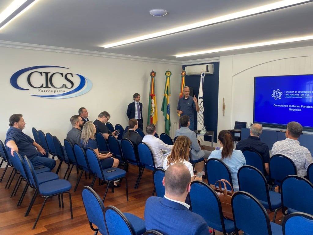 A sede da Câmara de Indústria, Comércio e Serviços de Farroupilha (CICS) foi palco de um importante bate-papo sobre oportunidades de conexão entre empresas gaúchas e o ecossistema empresarial italiano. O encontro ocorreu na manhã desta quinta-feira (13).