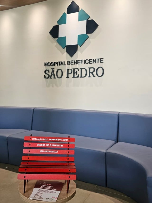 Além da instalação do banco oficial, o Grupo Elas ampliou a campanha. A associação confeccionou mini bancos vermelhos para distribuir em empresas, estabelecimentos comerciais, postos de saúde e outros espaços públicos. Junto a cada banquinho, entregam folders e cartazes informativos. Esses materiais reforçam orientações, listam contatos de emergência e destacam a denúncia como forma crucial de proteção e prevenção.
