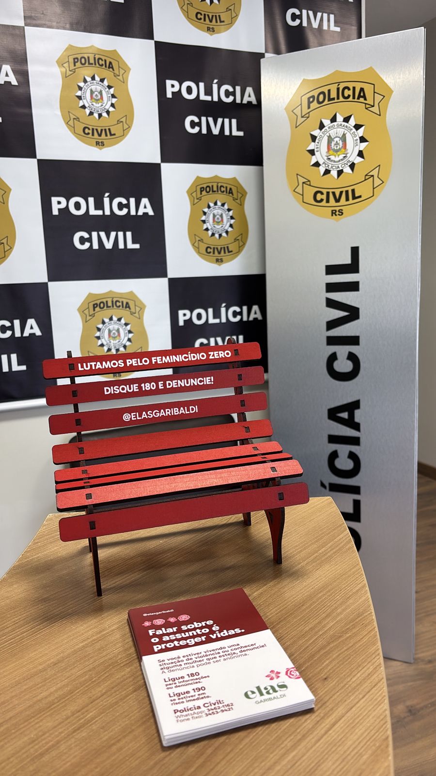 Garibaldi e Rio Grande do Sul - Em Garibaldi, a campanha Banco Vermelho conquistou um marco histórico. O município acaba de instalar seu primeiro banco na cor símbolo da luta, posicionado em frente à Delegacia de Polícia. Dessa forma, a cidade se torna uma das primeiras do Estado a abraçar esta iniciativa. O Grupo Elas, associação que atua no apoio a pessoas em vulnerabilidade social e na defesa da vida das mulheres, liderou a ação.