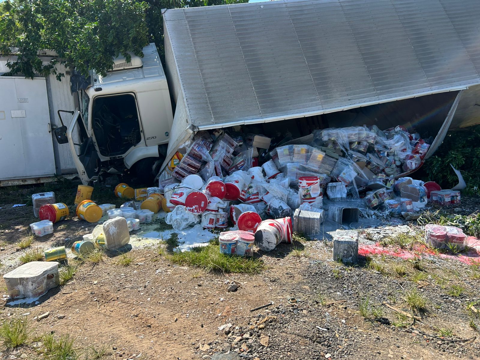 O Corpo de Bombeiros Voluntários foi acionado para atender a ocorrência. A carga de galões de tinta também ficou danificada com a queda. A Polícia Rodoviária deve investigar as causas exatas do acidente. O tráfego no local foi parcialmente comprometido durante os trabalhos de atendimento.