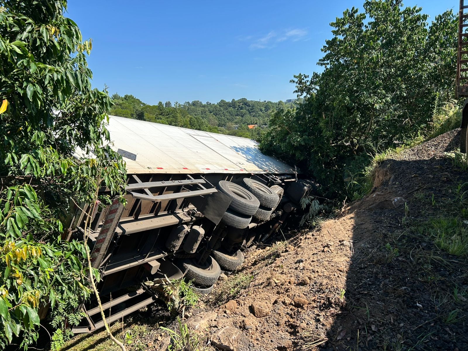 De acordo com informações apuradas, o motorista do veículo, com placas de Gravataí, teria perdido o controle da direção ao passar pelo local. O caminhão atravessou a via e saiu da rodovia, terminando o trajeto em um barranco.